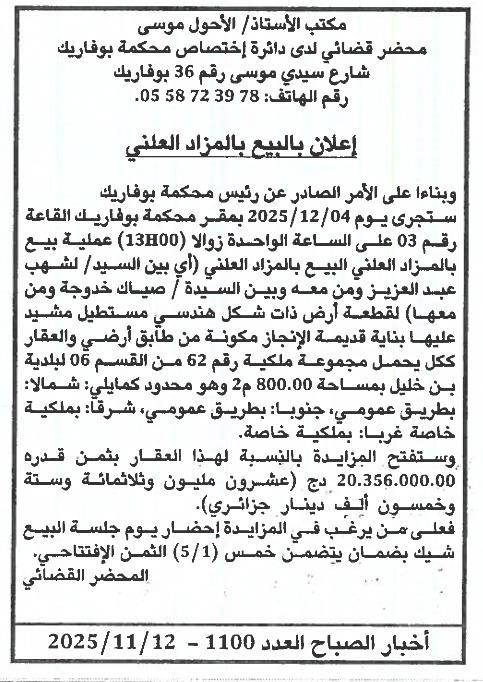Il sera procédé à la vente au plus offrant et dernier enchérisseur le :