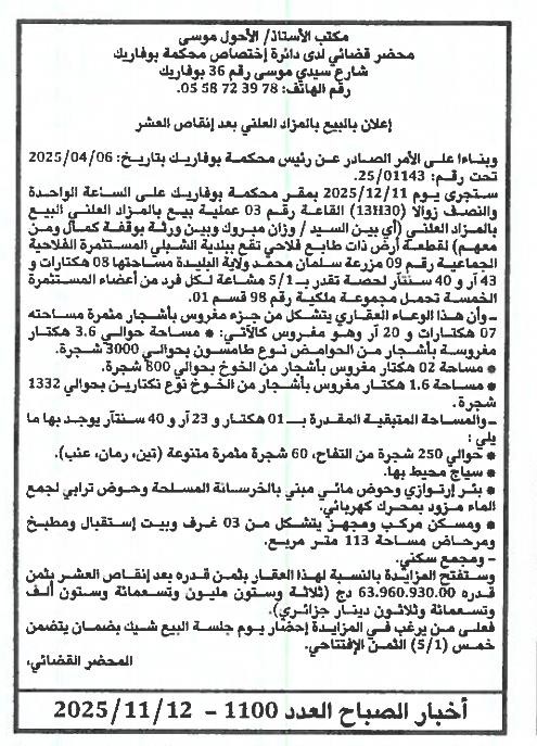 | Paru dans le journal : اخبار الصباح | |