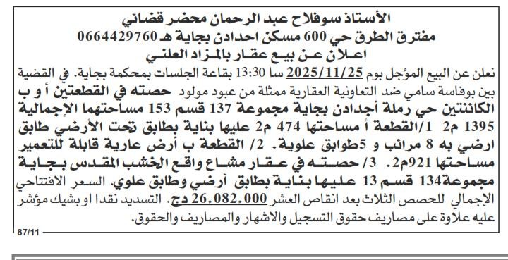 | Objet: Vente d'un immobilier | |