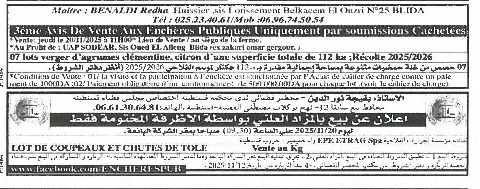 Il sera procédé à la vente au plus offrant et dernier enchérisseur le :