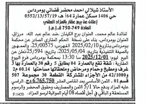Il sera procédé à la vente au plus offrant et dernier enchérisseur le :