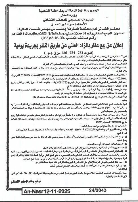 Il sera procédé à la vente au plus offrant et dernier enchérisseur le :