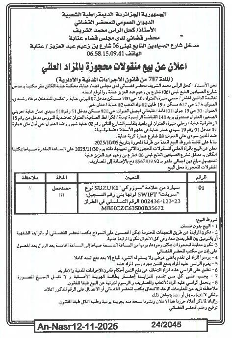 Il sera procédé à la vente au plus offrant et dernier enchérisseur le :