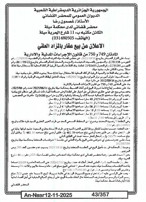 Il sera procédé à la vente au plus offrant et dernier enchérisseur le :