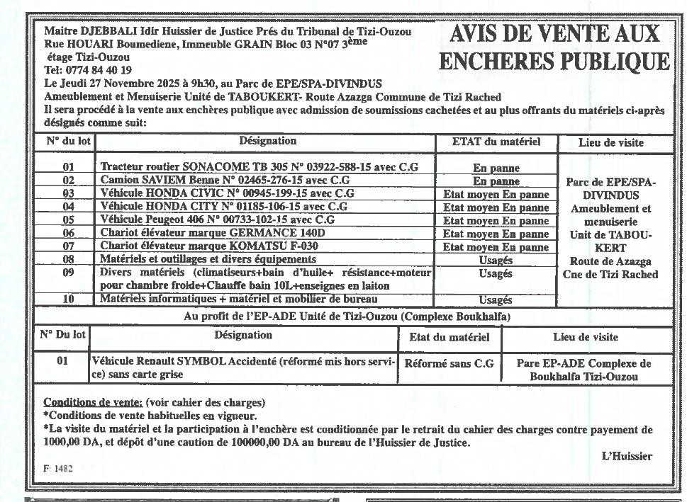 Il sera procédé à la vente au plus offrant et dernier enchérisseur le :