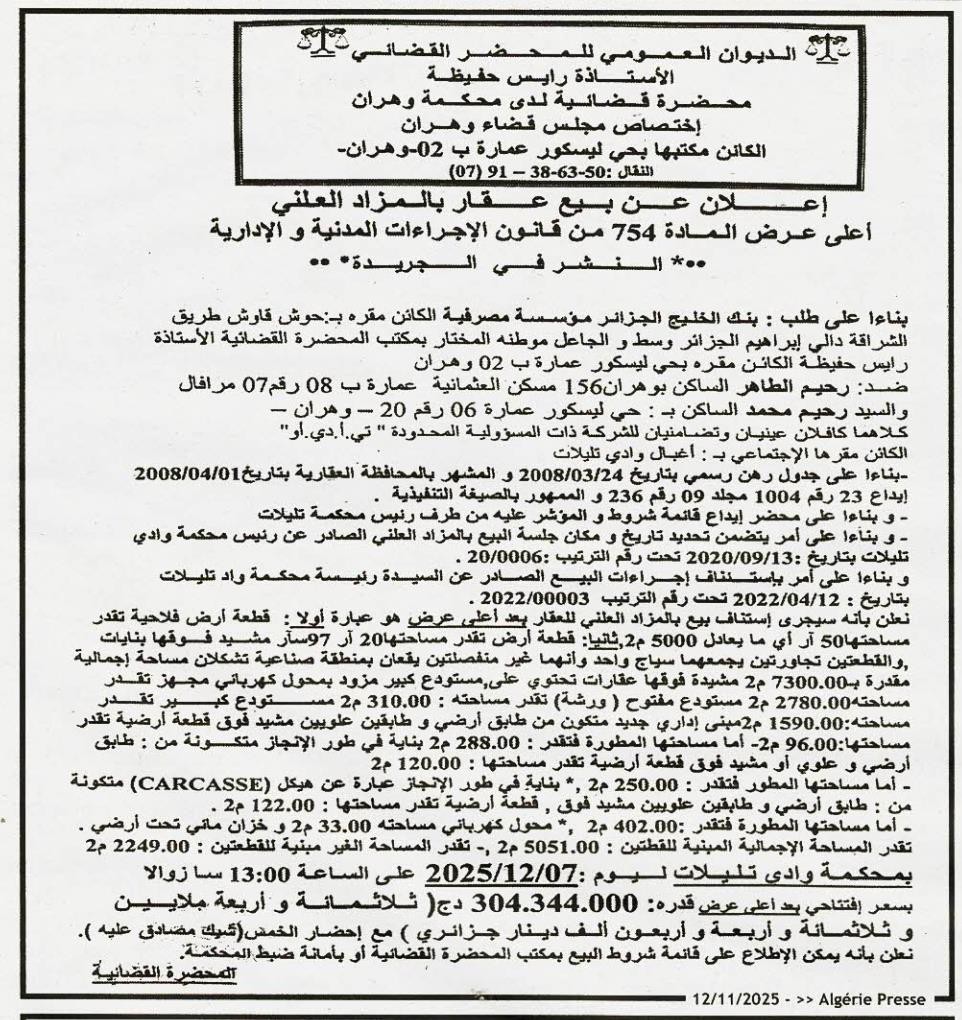 Il sera procédé à la vente au plus offrant et dernier enchérisseur le :