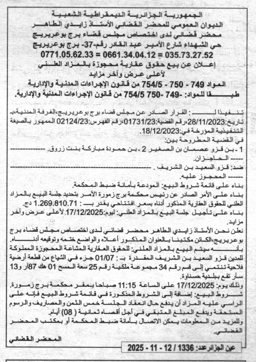 Il sera procédé à la vente au plus offrant et dernier enchérisseur le : 19/11/2025';