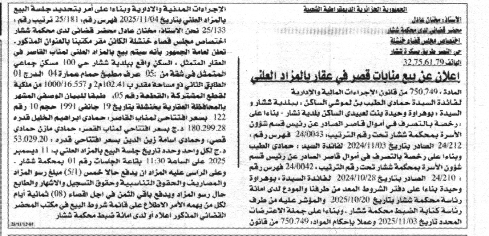 Il sera procédé à la vente au plus offrant et dernier enchérisseur le :