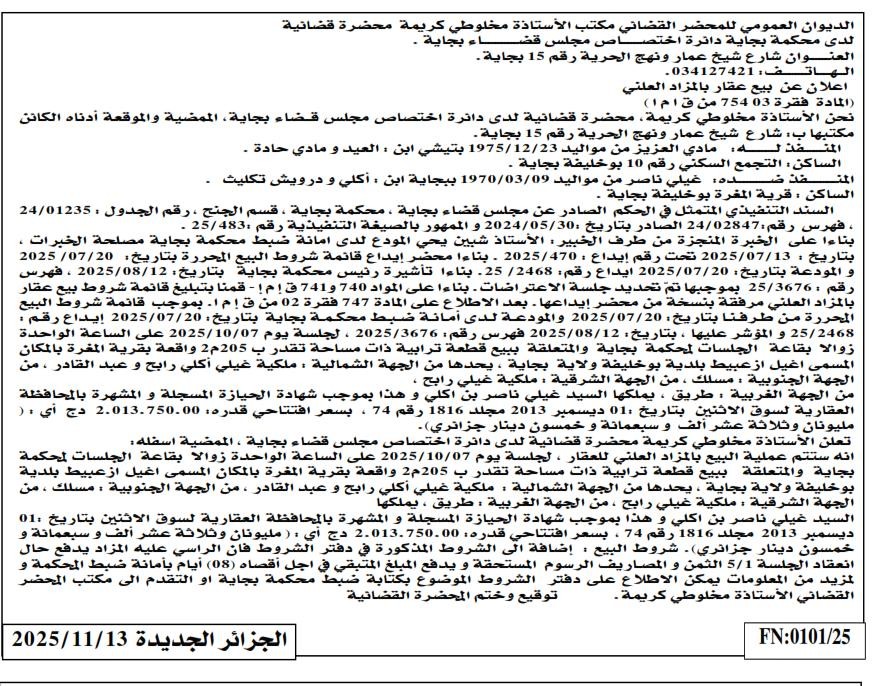 | Paru dans le journal : الجزائر الجديدة | |