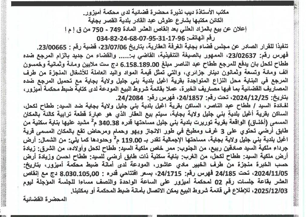 | Objet: Vente d'un immobilier | |