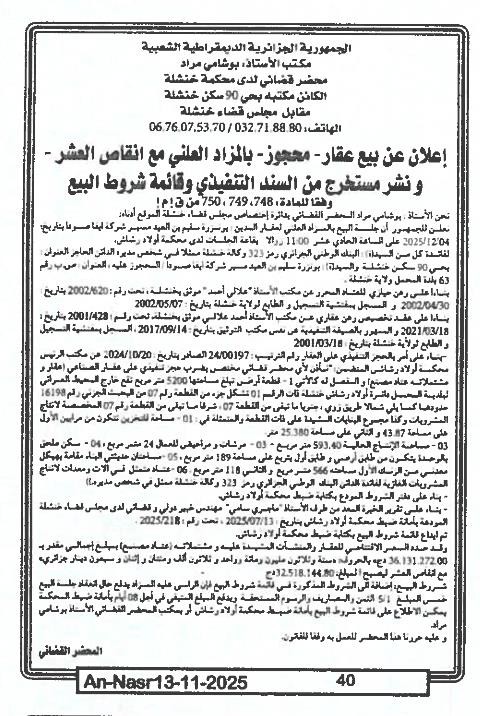 Il sera procédé à la vente au plus offrant et dernier enchérisseur le :