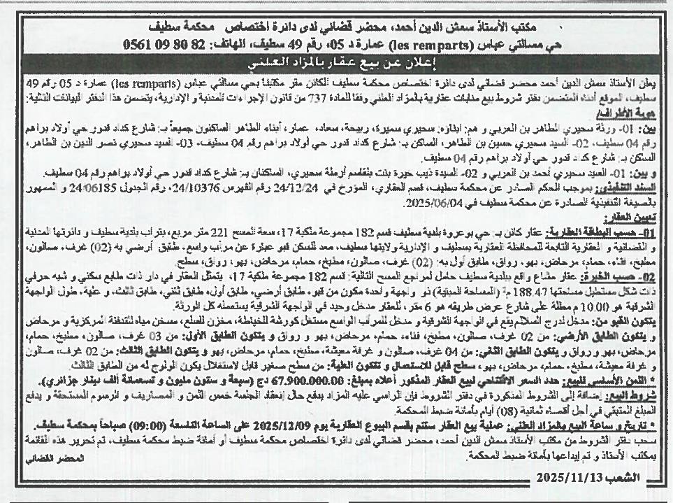 Il sera procédé à la vente au plus offrant et dernier enchérisseur le :