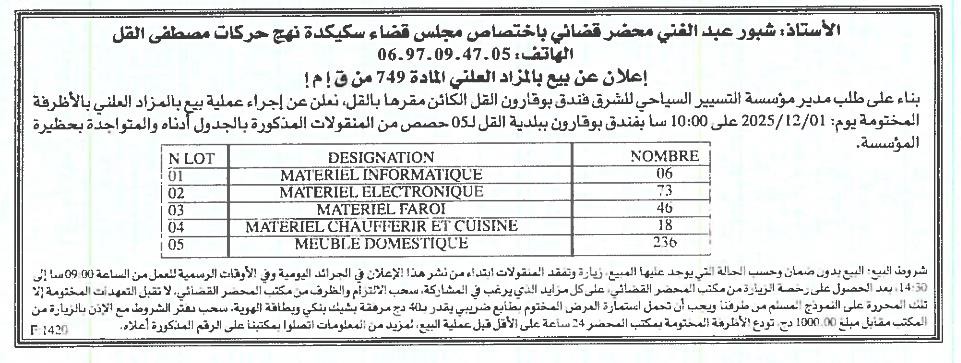 Il sera procédé à la vente au plus offrant et dernier enchérisseur le :