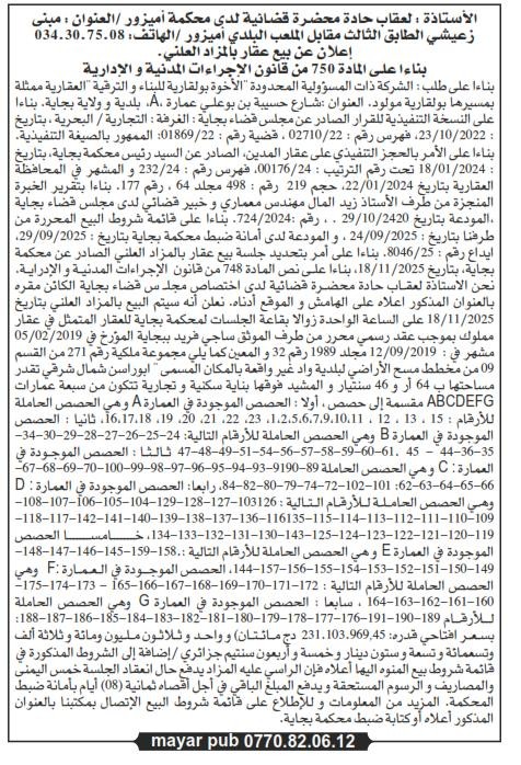 Il sera procédé à la vente au plus offrant et dernier enchérisseur le : 20/11/2025';