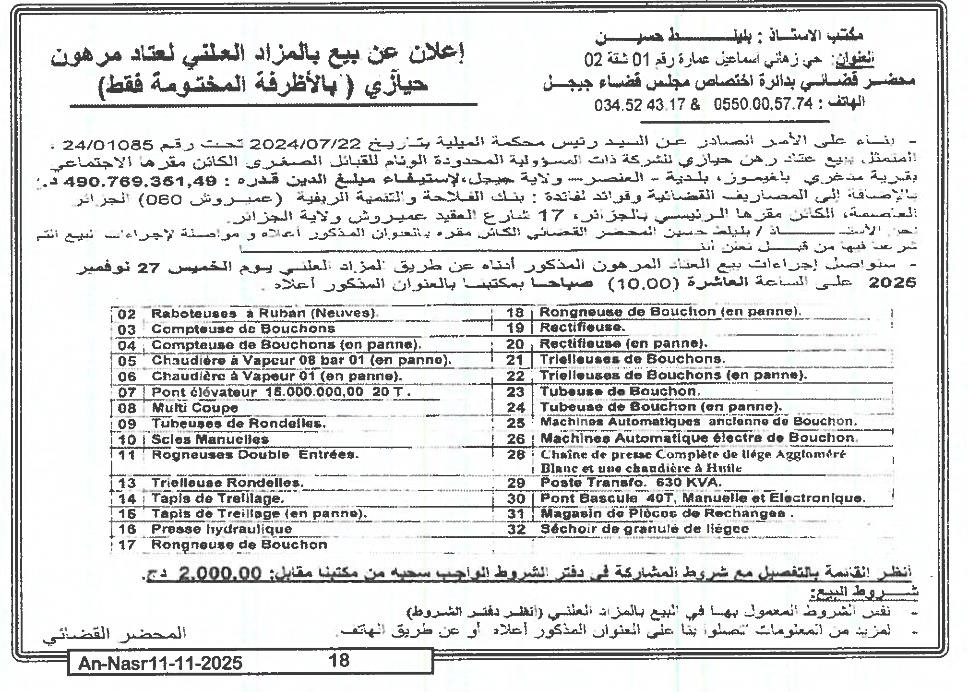 Il sera procédé à la vente au plus offrant et dernier enchérisseur le :