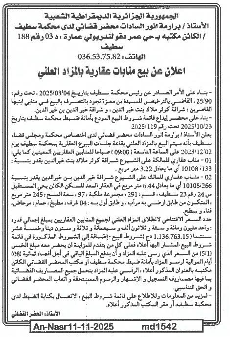 Il sera procédé à la vente au plus offrant et dernier enchérisseur le :