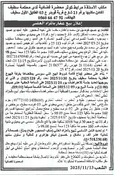 Il sera procédé à la vente au plus offrant et dernier enchérisseur le :