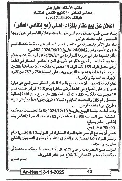 Il sera procédé à la vente au plus offrant et dernier enchérisseur le :
