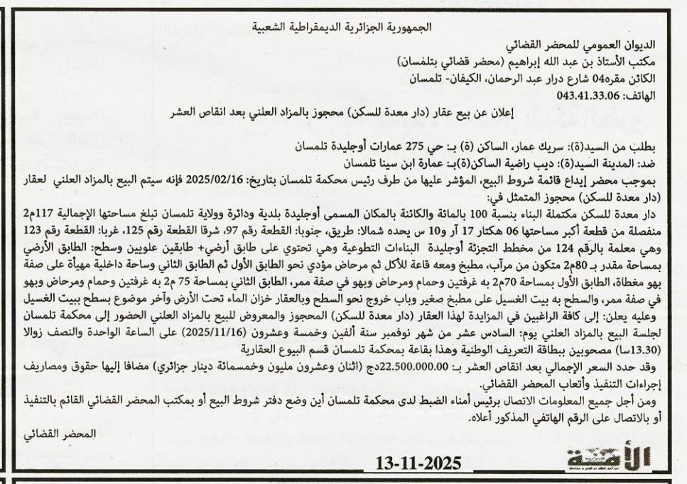 Il sera procédé à la vente au plus offrant et dernier enchérisseur le :