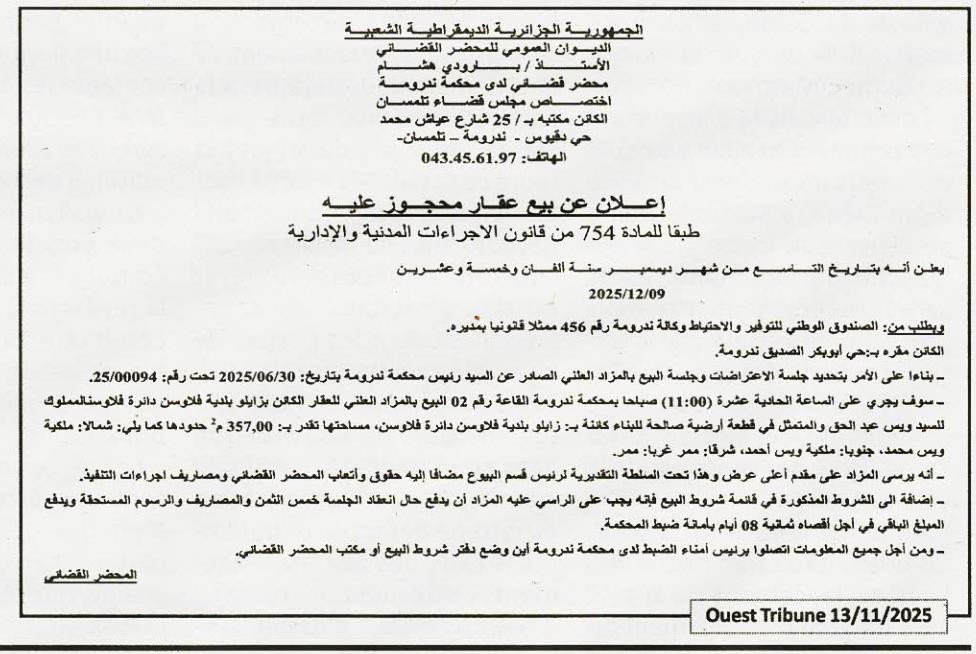Il sera procédé à la vente au plus offrant et dernier enchérisseur le :