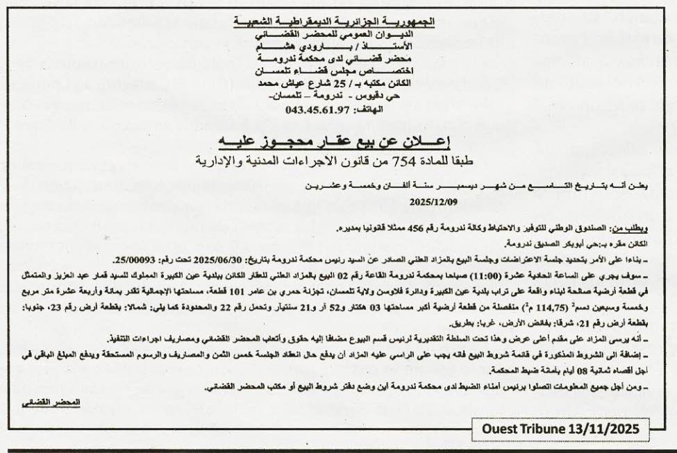 Il sera procédé à la vente au plus offrant et dernier enchérisseur le :