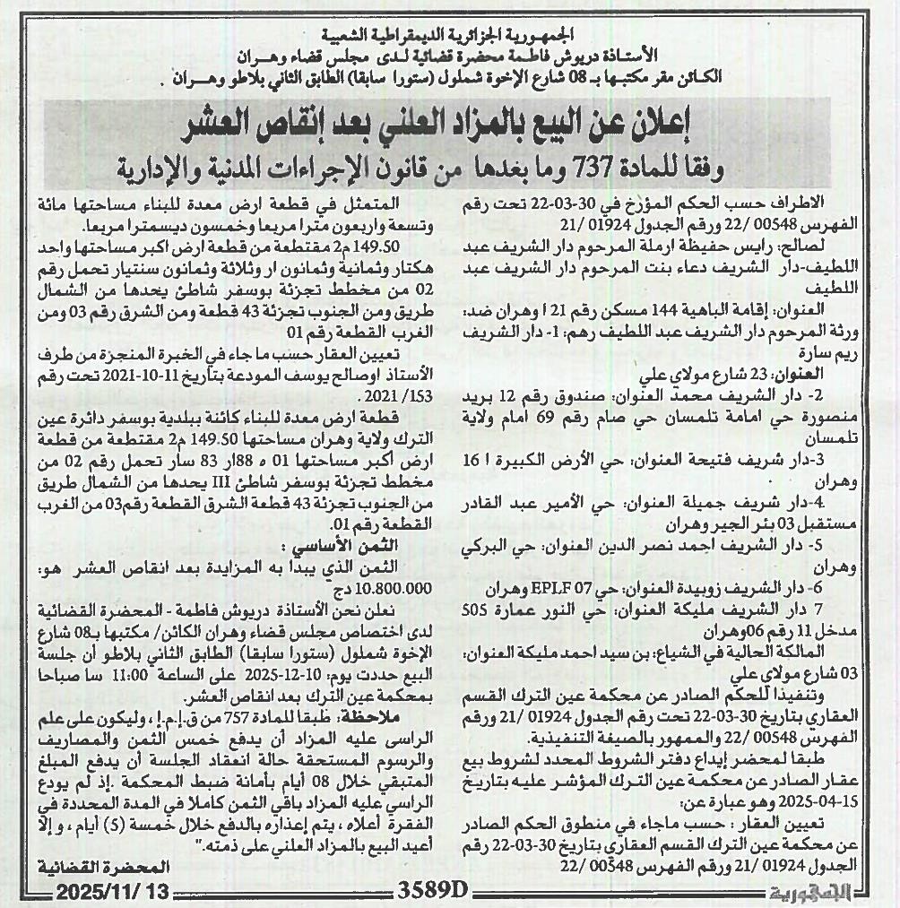 Il sera procédé à la vente au plus offrant et dernier enchérisseur le :