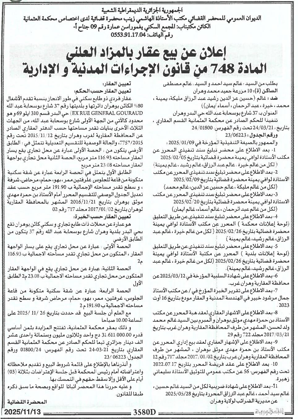 Il sera procédé à la vente au plus offrant et dernier enchérisseur le :