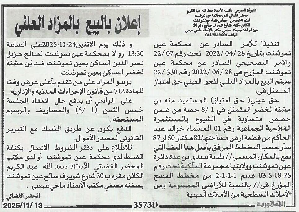 Il sera procédé à la vente au plus offrant et dernier enchérisseur le :