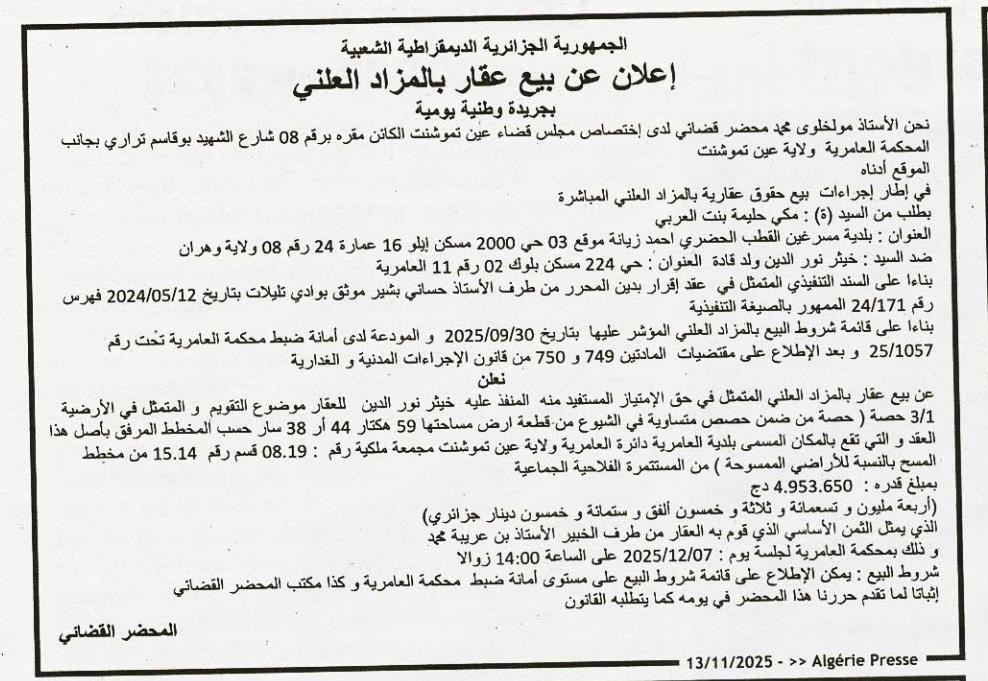 Il sera procédé à la vente au plus offrant et dernier enchérisseur le :