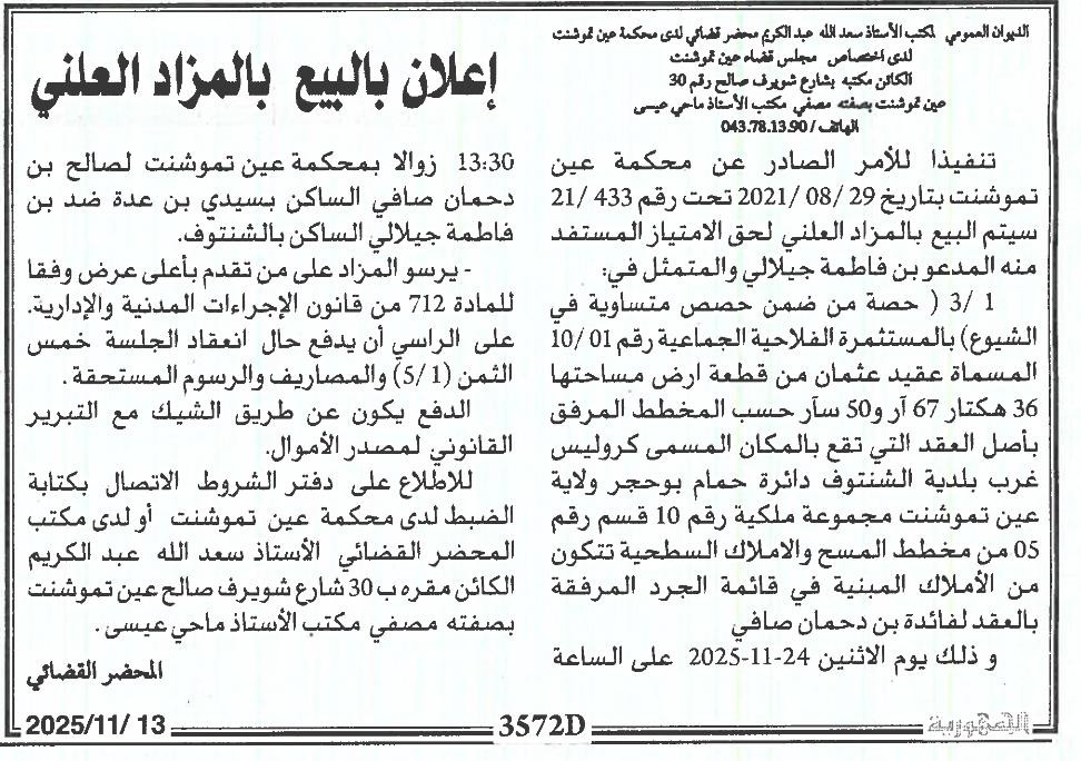 Il sera procédé à la vente au plus offrant et dernier enchérisseur le : 24/11/2025';