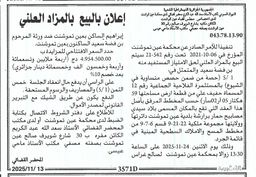 Il sera procédé à la vente au plus offrant et dernier enchérisseur le : 24/11/2025';