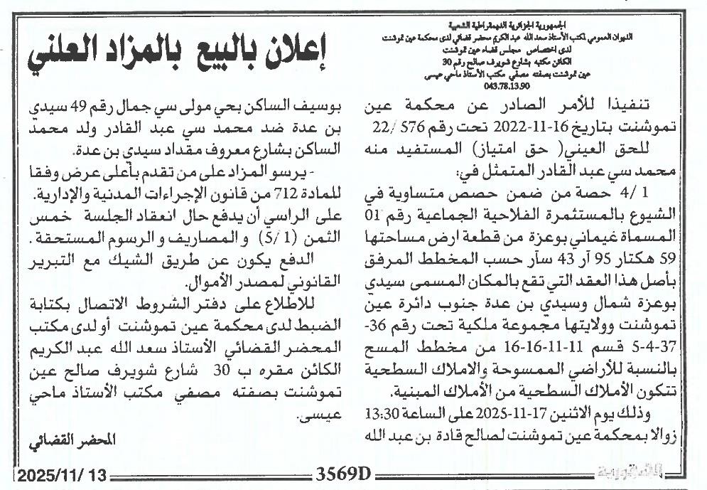 Il sera procédé à la vente au plus offrant et dernier enchérisseur le : 17/11/2025';