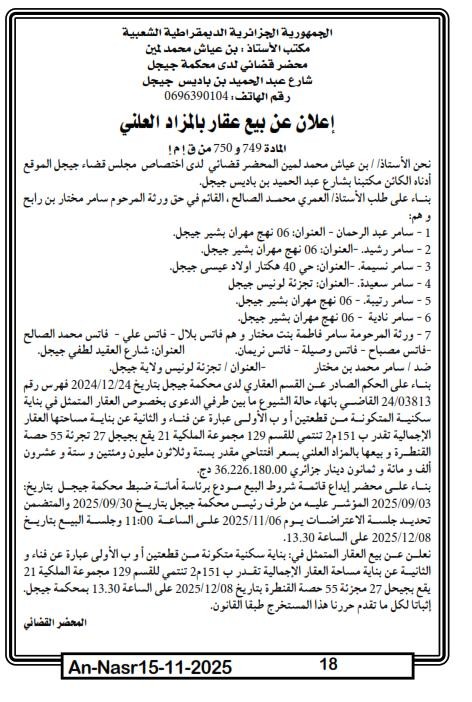 Il sera procédé à la vente au plus offrant et dernier enchérisseur le :