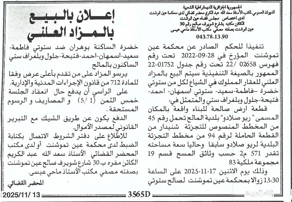 Il sera procédé à la vente au plus offrant et dernier enchérisseur le :