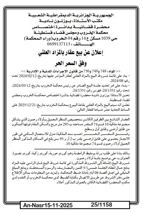 Il sera procédé à la vente au plus offrant et dernier enchérisseur le :