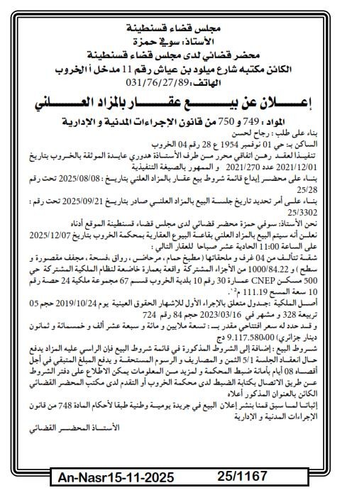 | Paru dans le journal : النصر | |