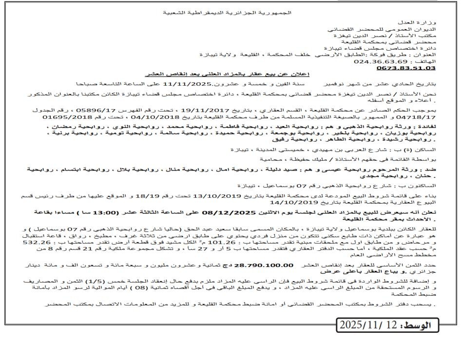 Il sera procédé à la vente au plus offrant et dernier enchérisseur le :