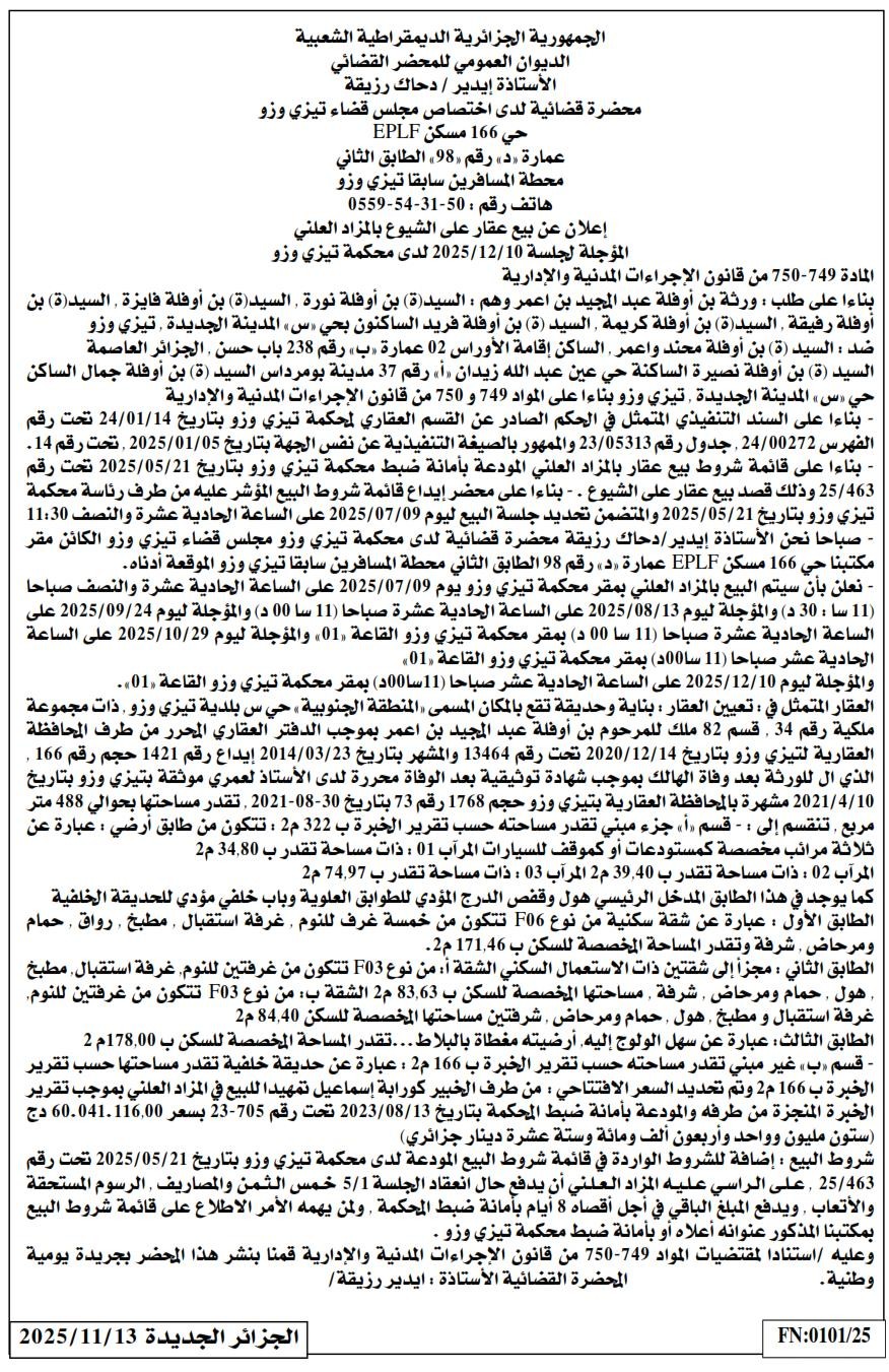 | Paru dans le journal : الجزائر الجديدة | |