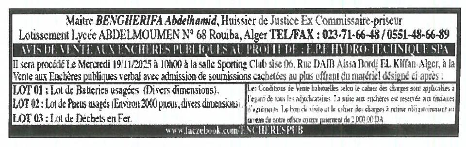 | Enchères aux Vente | |