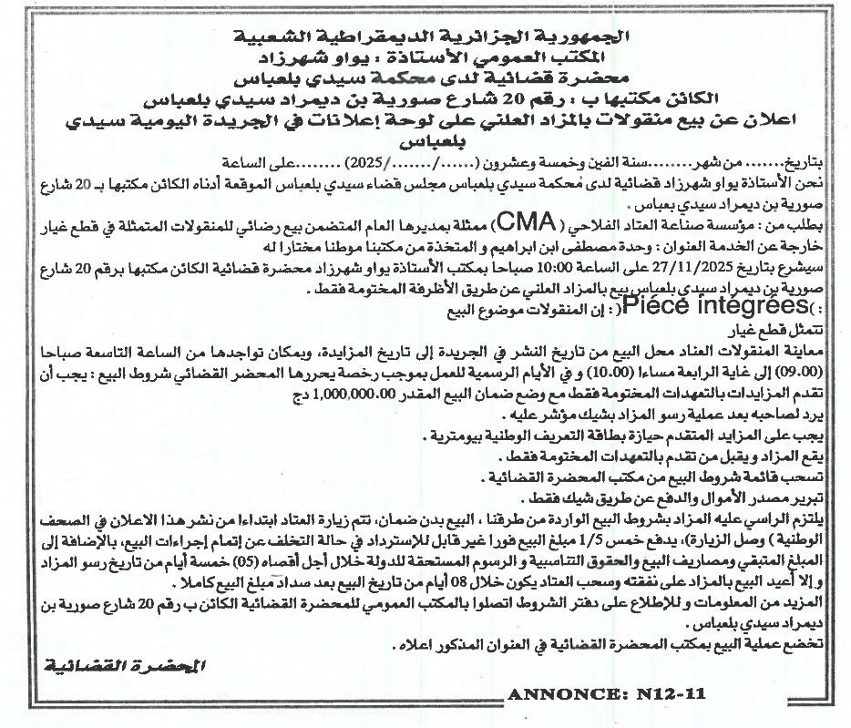 Il sera procédé à la vente au plus offrant et dernier enchérisseur le :