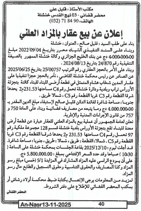 Il sera procédé à la vente au plus offrant et dernier enchérisseur le :