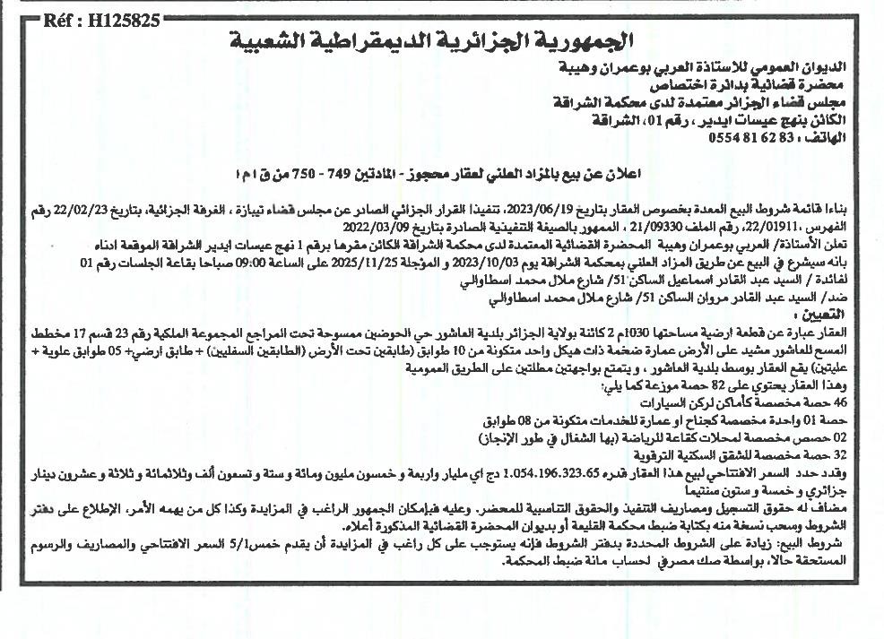Il sera procédé à la vente au plus offrant et dernier enchérisseur le :
