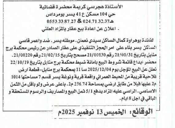 | Paru dans le journal : الوقائع | |