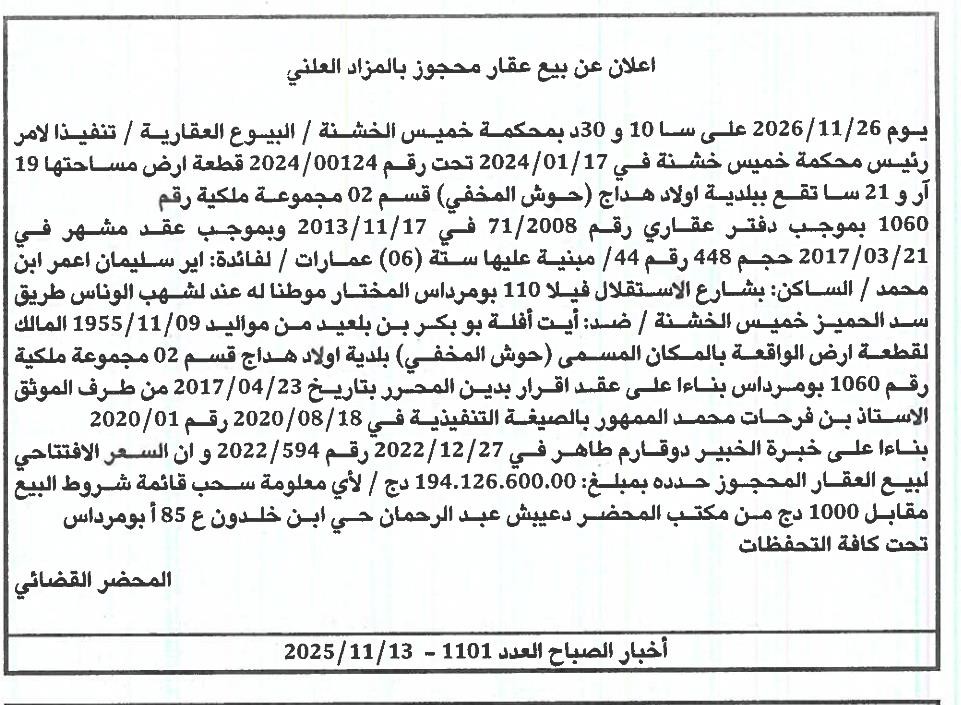 | Paru dans le journal : اخبار الصباح | |