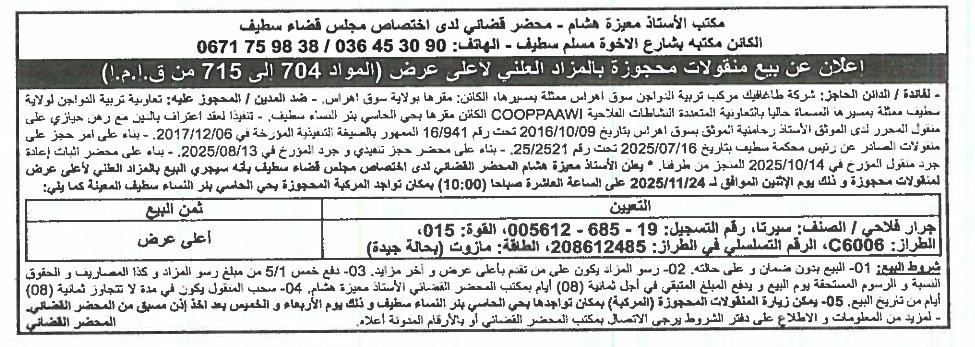 Il sera procédé à la vente au plus offrant et dernier enchérisseur le :