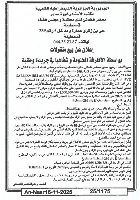 Il sera procédé à la vente au plus offrant et dernier enchérisseur le :