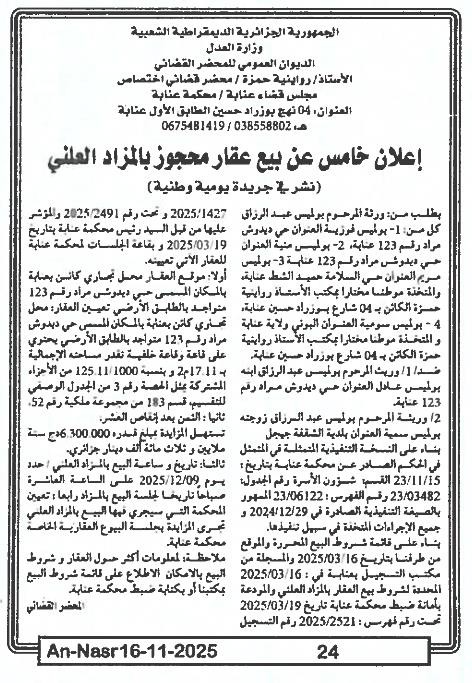 Il sera procédé à la vente au plus offrant et dernier enchérisseur le :