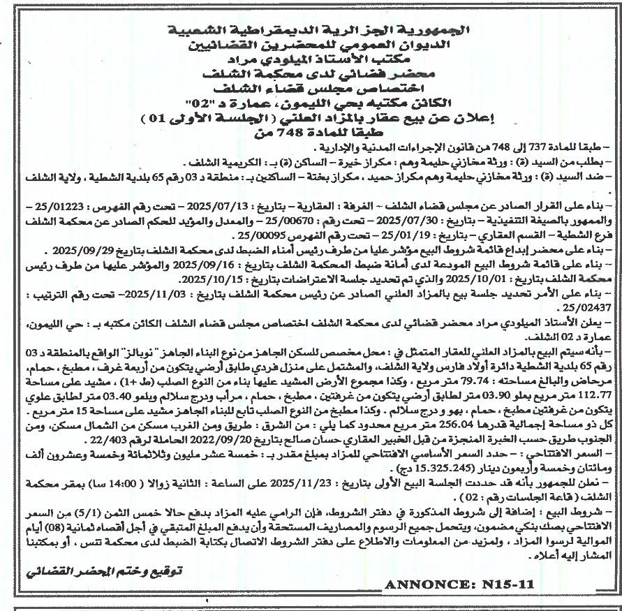 Il sera procédé à la vente au plus offrant et dernier enchérisseur le :