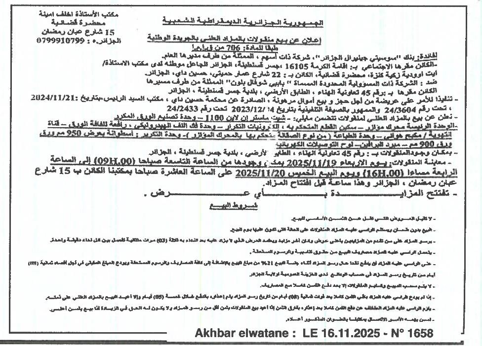 Il sera procédé à la vente au plus offrant et dernier enchérisseur le :