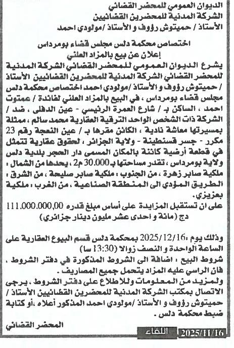 Il sera procédé à la vente au plus offrant et dernier enchérisseur le :